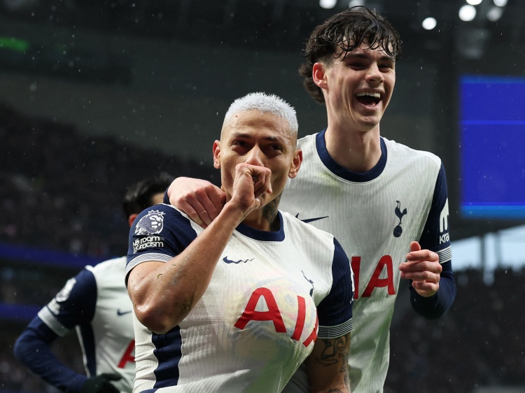 11月24日讯 英超第12轮的北伦敦德比,热刺在酋长球场挑战阿森纳。本场比赛,在球队0-3落后的情况下,里沙利松为热刺打进1球,而且是一粒惊天吊射。